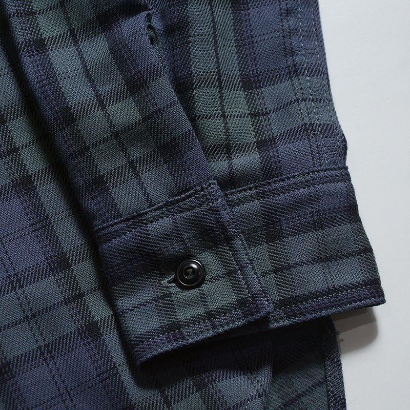 1700年代に誕生したとされるチェック柄「ブラックウォッチ」。数多あるチェック柄の中で唯一のスコットランド軍で採用された実績からブラックウォッチと命名され、ネイビー・ブラック・グリーンで構成されたタータンチェック。チェック柄の起源と共に3シーズン対応のミディアムネルシャツの素材感を体感下さい。