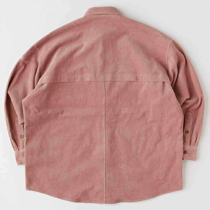 程よい肉感のコーデュロイ素材を使用した、通常よりも身幅・肩幅にゆとりをもたせたBIGシルエットシャツ。ハンティングディテールを採用した胸フラップポケットや腰ポケットを備え、パーカーやニットの上からラフに羽織ってアウターライクに楽しみたいアイテム。袖のロゴ刺繍と裾のブランドネームもさり気なく主張してくれる。
