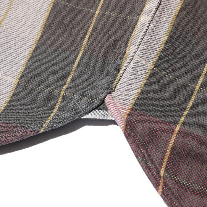 JELADOの定番ネルシャツが今年も登場。ライチ、アプリコット、ズッキーニ、プルーンの4色展開で、旧力織機で織り上げた別注ネル生地を使用。ショート丈デザインと耳付きマチが特徴です。表面は油抜けしたカサカサ感、裏面は控えめな起毛で、着込んだ雰囲気を表現。同じ太番手の糸をタテ・ヨコに強く打ち込み、裏起毛後に油抜け加工を施し、手間をかけてヴィンテージ感を再現しました。古き良きアメリカの雰囲気を残しつつ、アームや身幅を調整。肩幅を広めに、身幅をタイトに、着丈を短めに設定。ライダースやフライトジャケット、ダウンベストなどとも好相性のデザインです。綿糸を基調に、一部スパン糸を使用し、製品後に強めのユーズド加工を施しました。しっかりとした生地感で、ヴィンテージ感とスタイリッシュさを両立。普段着としての快適さと保温性も魅力の一着です。