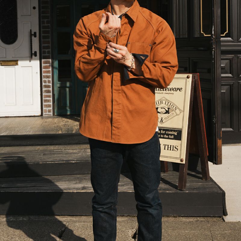発売以来人気の40sデニムシャツに別色別素材タイプが登場。古きキャンバスダック素材を製造使用したタイトショートシルエット、ジャケットのようでシャツ扱い可能な唯一無二のデザインが特徴です。デラックスウエアが推進する「持つべき1着のデザイン形状」です。