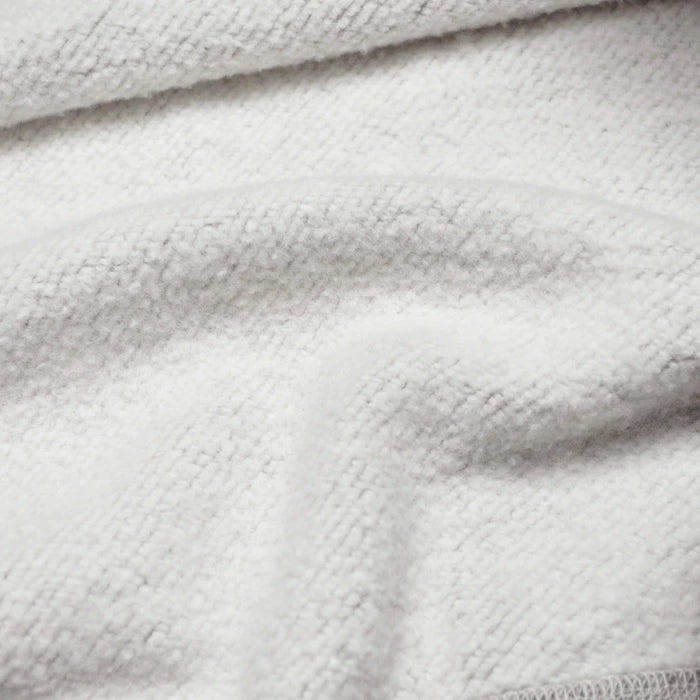 ウールニットの素材からループ状の裏起毛を持つコットン素材に生まれ変わり、“汗を吸うシャツ”として米国民のデイリーウェアとして進化を遂げたスウェットシャツ。ハードなトレーニングを日常とする軍や士官学校もいち早く目を付け、全米に点在する基地売店でも扱われるようになった。素材は当時と同じように不均一なテンションで編み込まれる筒状の吊り編み機を使用しているため、特有の柔軟性を持つ素材である。縫合は肌着などに適した4本針のフラットシーマによるもので、V字型のガゼットは身頃の上にリブ素材を乗せて縫い付けた、通称“叩き付けV”の仕様。