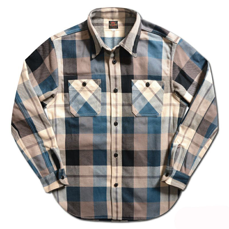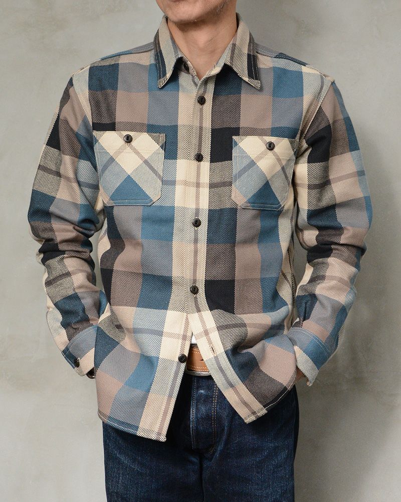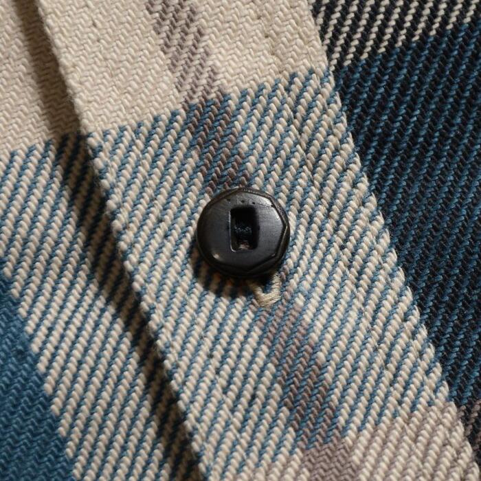 織り糸に4番糸という極太糸を使用し、特厚に仕上げたヘビーネルシャツ。まるでウールを織り上げ圧縮して創るメールトンのような質感から「コットンメルトン」と呼んでいます。極厚ネルの存在感とネイビーマルチカラーのチェック柄の雰囲気が絶妙にマッチするヘビーネルシャツ。