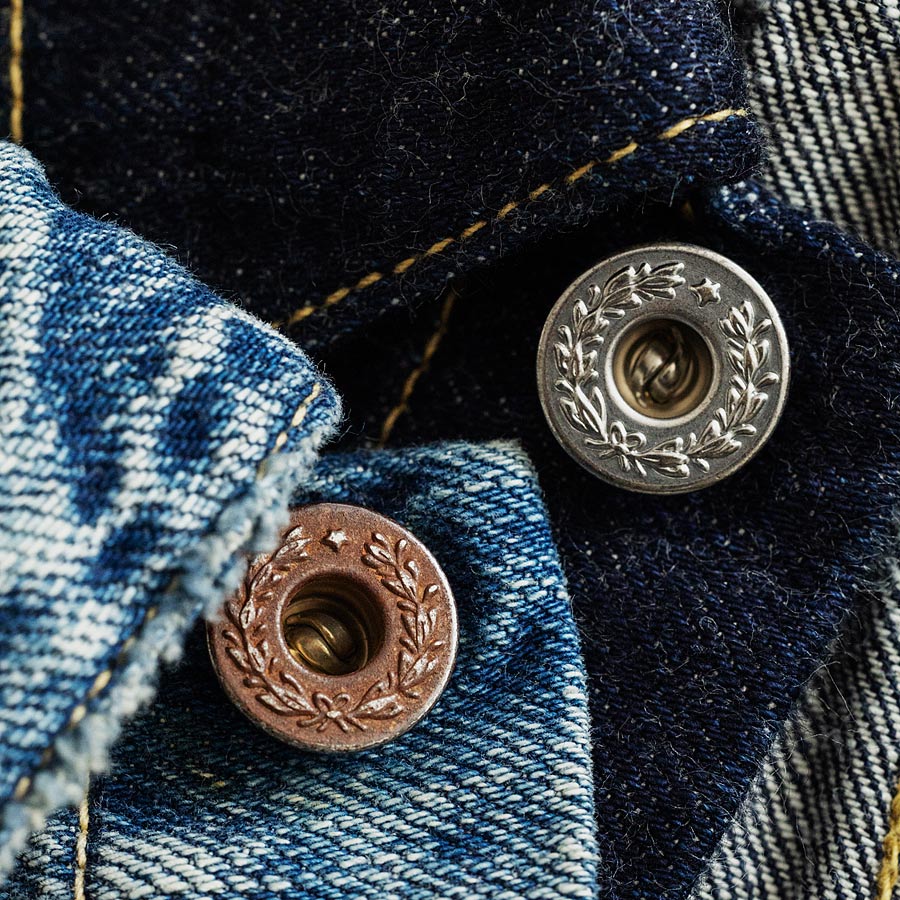 FULLCOUNT(フルカウント)は、デニムマニアの中で一般的に「大戦モデル」と呼ばれる、第二次世界大戦中のヴィンテージジーンズのディティールを踏襲した、新たなリミテッドコレクションを発売いたします。 フルカウントではこれまでも幾度も「大戦モデル」のシリーズをリリースしており、近年では創業30周年モデル、2024年にはあえて仕上げの糸つみをせず、半製品のような状態を表現した限定モデルも発売しました。通常の定番モデルやシーズンアイテムも安定した人気を誇りますが、フルカウントの「大戦モデル」は、発売のたびに大きな話題となる人気シリーズです。 今回はその「大戦モデル」を、ブランドの中で新定番として位置付けられている、11.5oz(オンス)のデニム生地を使って製作。フルカウントでは長年13.7ozを定番生地として使っていますが、近年独自に開発した11.5ozは、一般的なデニム生地より軽く、夏場でも着用ストレスのない新定番生地。デニム特有のその穿き心地の良さ、そして美しい色落ちも担保しているため、デニムマニアからも「一度着用するとやめられない」という評判をいただいています。 デニムパンツは、フルカウントの定番モデルの中でも特に人気の高いワイドシルエットの「0105」をベースに、「大戦モデル」のディティールを追求しています。もちろん生地はフルカウントの代名詞となっているジンバブエコットンを使用した日本製セルビッチデニム。ボタンはオリジナルで新たに作製した鉄製の唐草模様の月桂樹ボタンで、刻印なしの打ち抜きリベット、ポケット内側のスレーキにはデッドストックのインディゴヘリンボーンをランダムに使用するなど、第二次大戦時のディティールを網羅しています。 「大戦モデル」の特徴として、“雑な縫製”であった(※)こともヴィンテージとしての魅力の一つですが、今回のモデルでは、しっかりと強い糸調子でパッカリングを強調した縫製を採用。ステッチは、インディゴブルーはイエロー系のグラデーション仕様