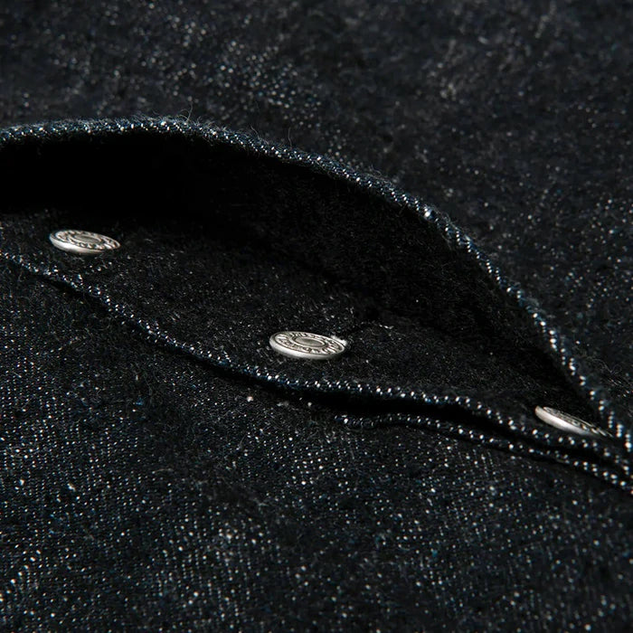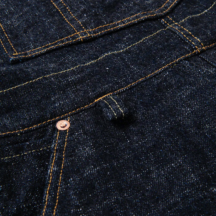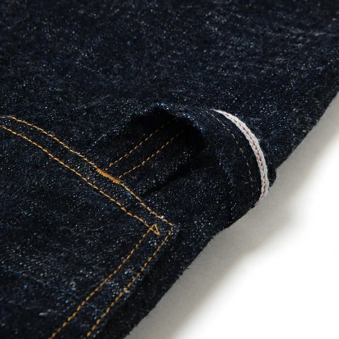 効率的かつ均一に生産される現代のデニムでは再現できない、独特のムラ感や粗野な風合いが特徴です。