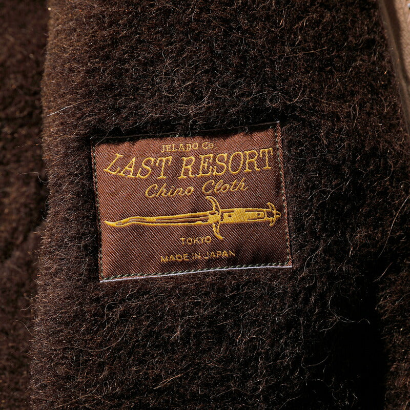 オリジナルの課題でもあったアウターシェルの耐久性を向上させるため、LASTRESORT茶タグのオリーブカラーの高耐久コットンツイルを使用。Pコートのラペルを彷彿とさせる襟には芯地を入れ、特徴的な膨らみのある段返りを再現。さらに、ライニング側にはビルトインのウエストアジャスターを備え、細部まで徹底的にこだわり抜きました。