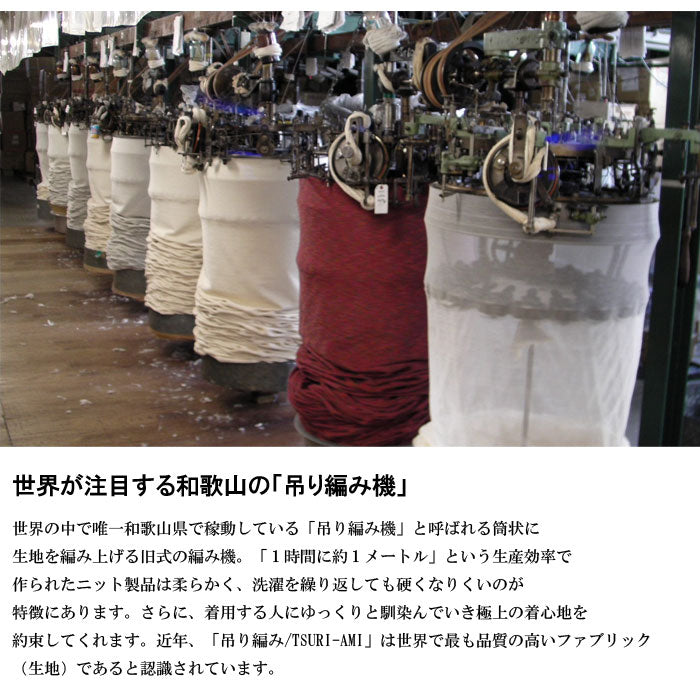 ディテールは、ヴィンテージ・タイプの旧式の吊編み機でゆっくり織り上げた丸胴ボディ、本格はめこみ式の両V、長リブ、セットインスリーブ、主要縫製部位フラットシーマー縫製とヴィンテージディテールであります。