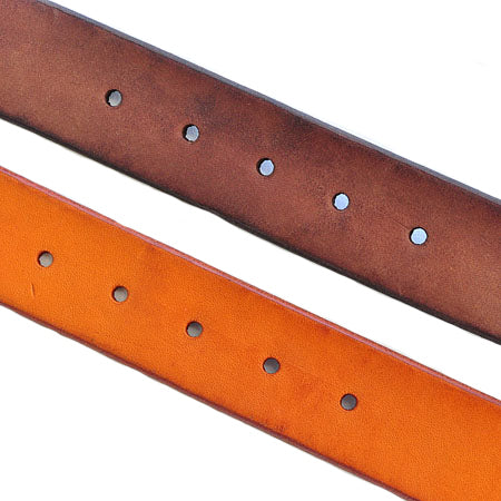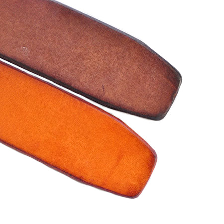牛一頭から15本しかベルトとして使えない、北米産の牛革のベンズ部位を使用し独自の技法カッティングダイにて染め上げ手作業にて完璧に仕上げたベルトです。